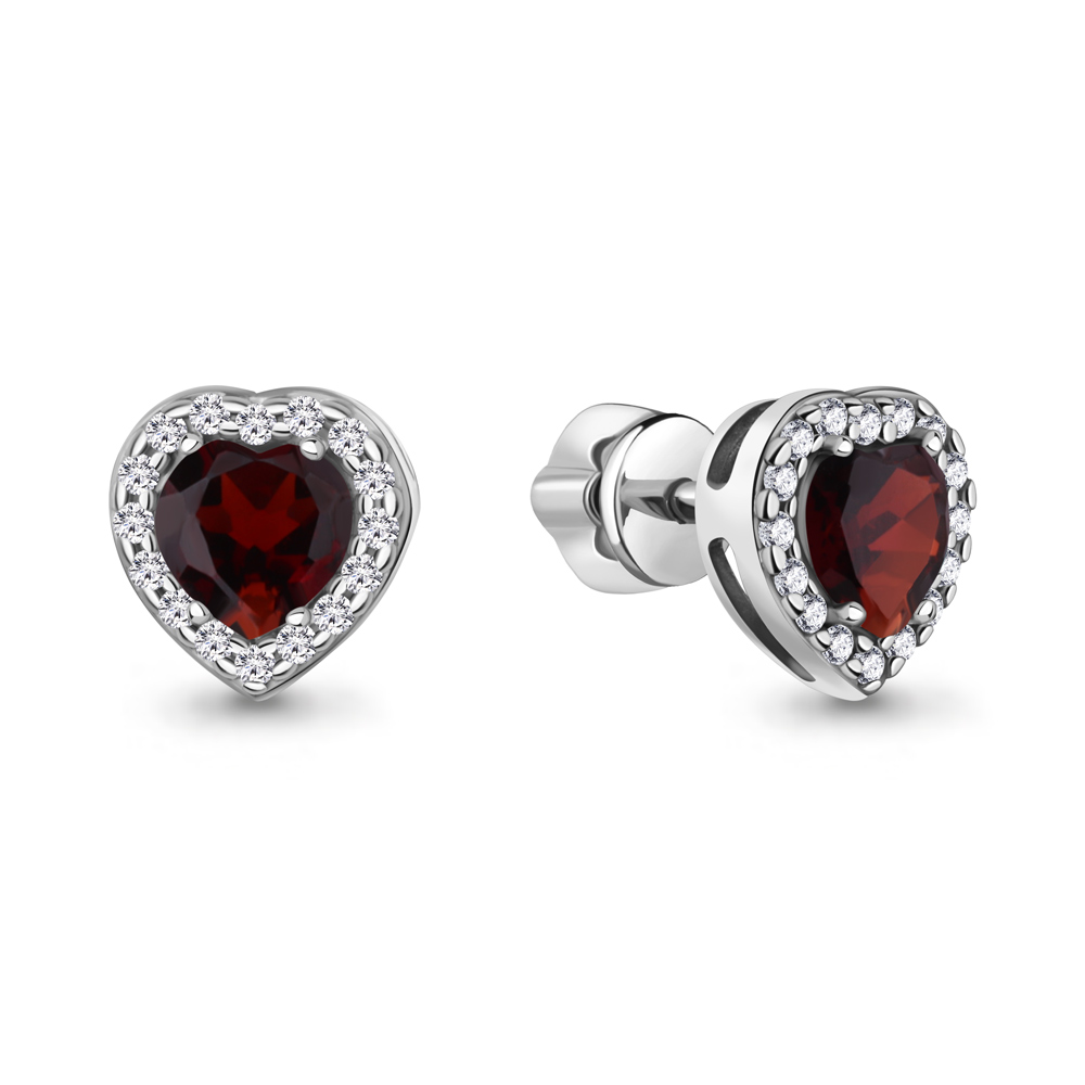 Серьги из серебра с гранатами и фианитами
