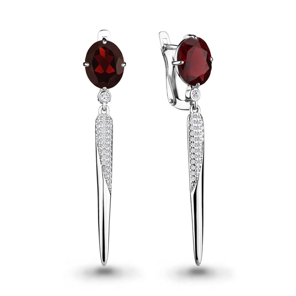 Серьги из серебра с гранатами и фианитами