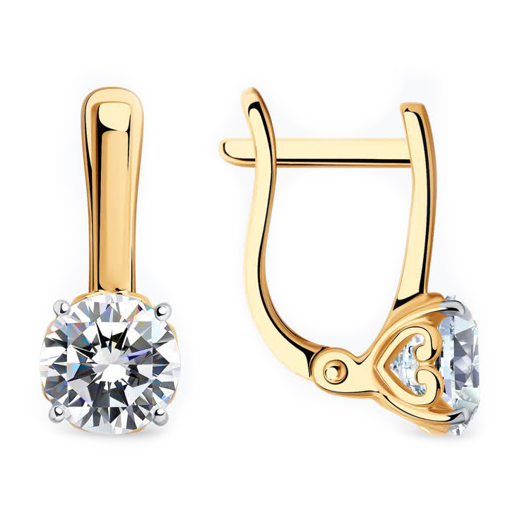 Серьги из серебра с позолотой и фианитами