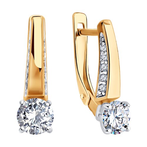 Серьги из серебра с позолотой и фианитами