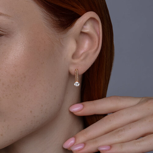 Серьги из серебра с позолотой и фианитами