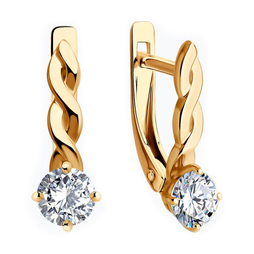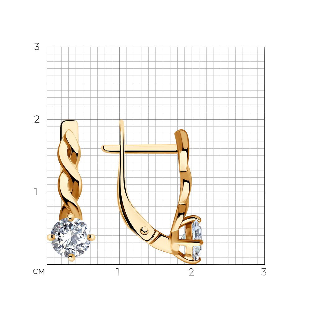 Серьги из серебра с позолотой и фианитами