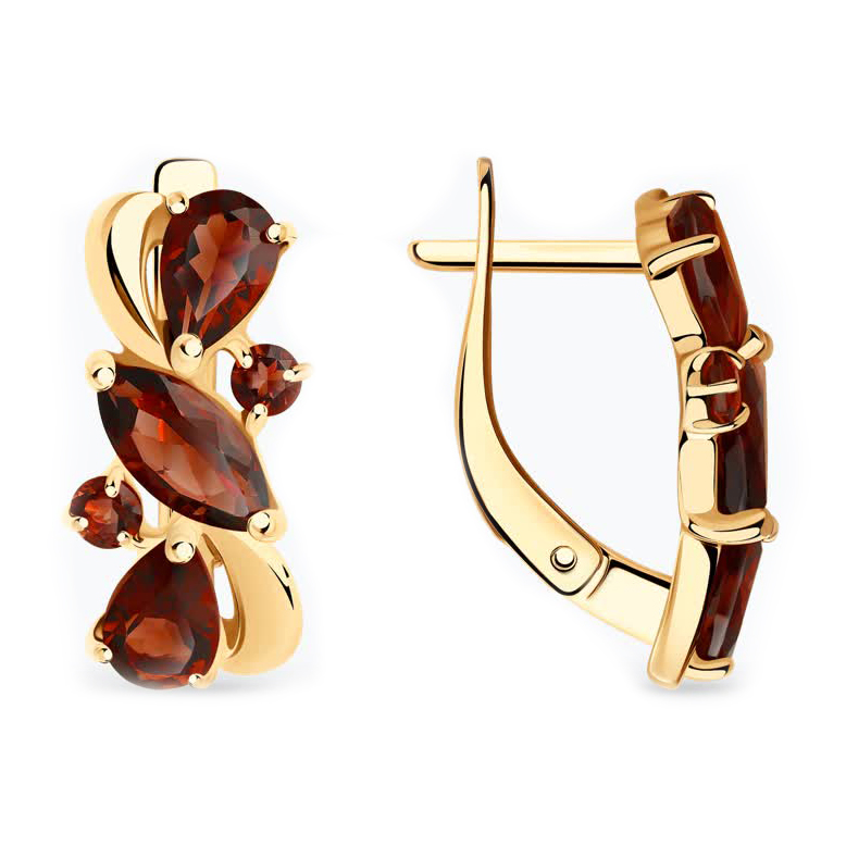 Серьги из серебра с позолотой и гранатами