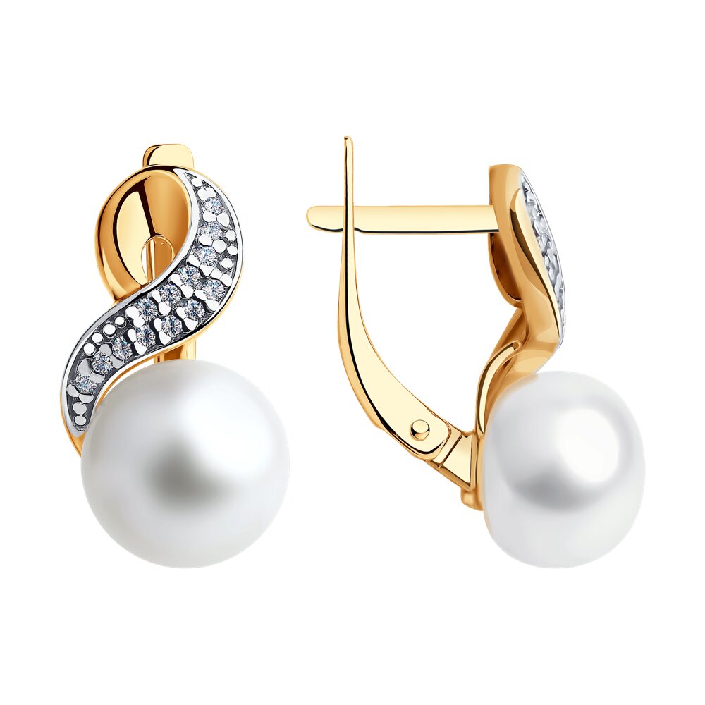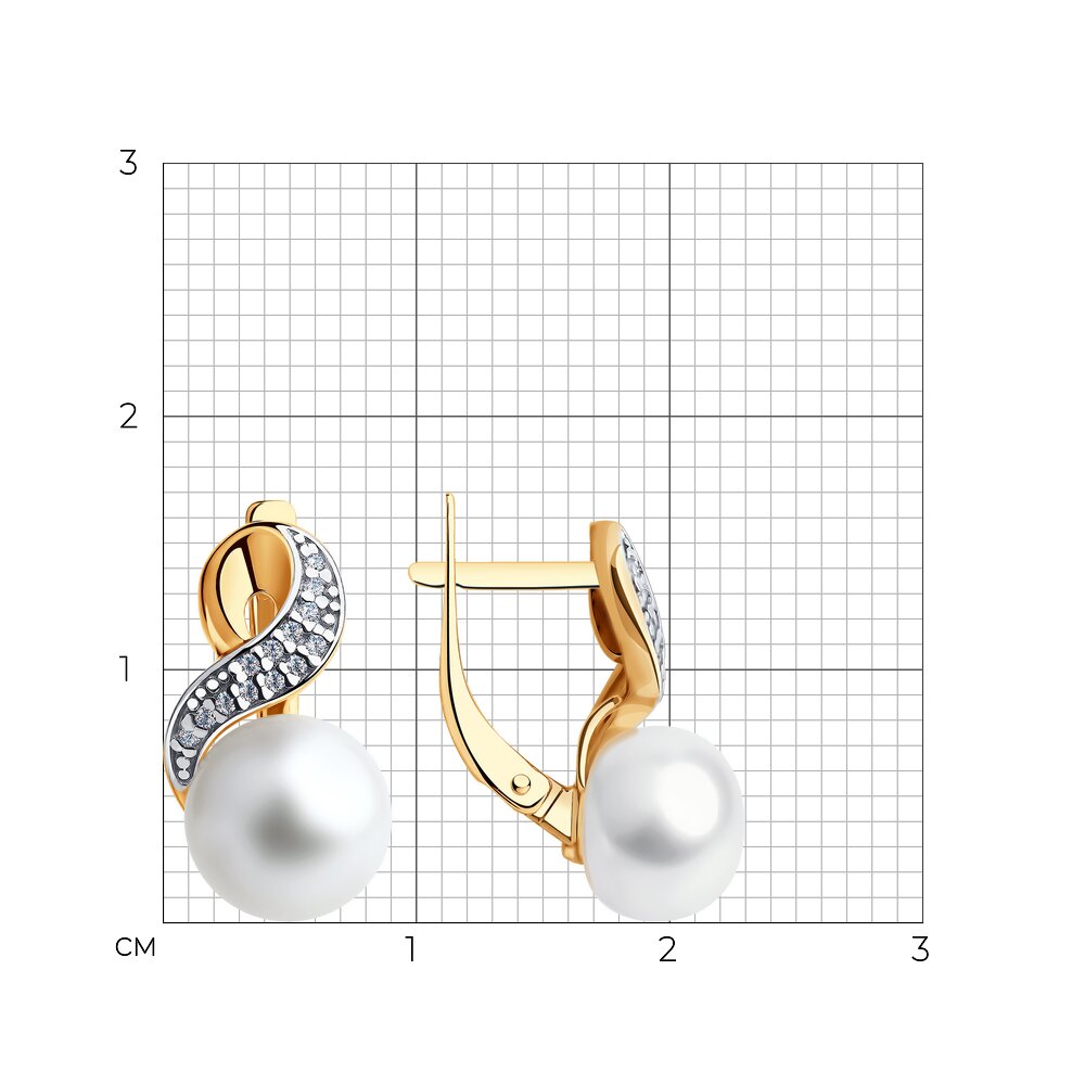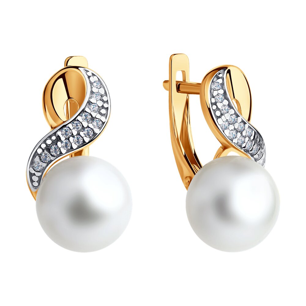Серьги из серебра с позолотой, жемчугом и фианитами