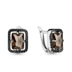 Серьги из серебра с раухтопазами и фианитами