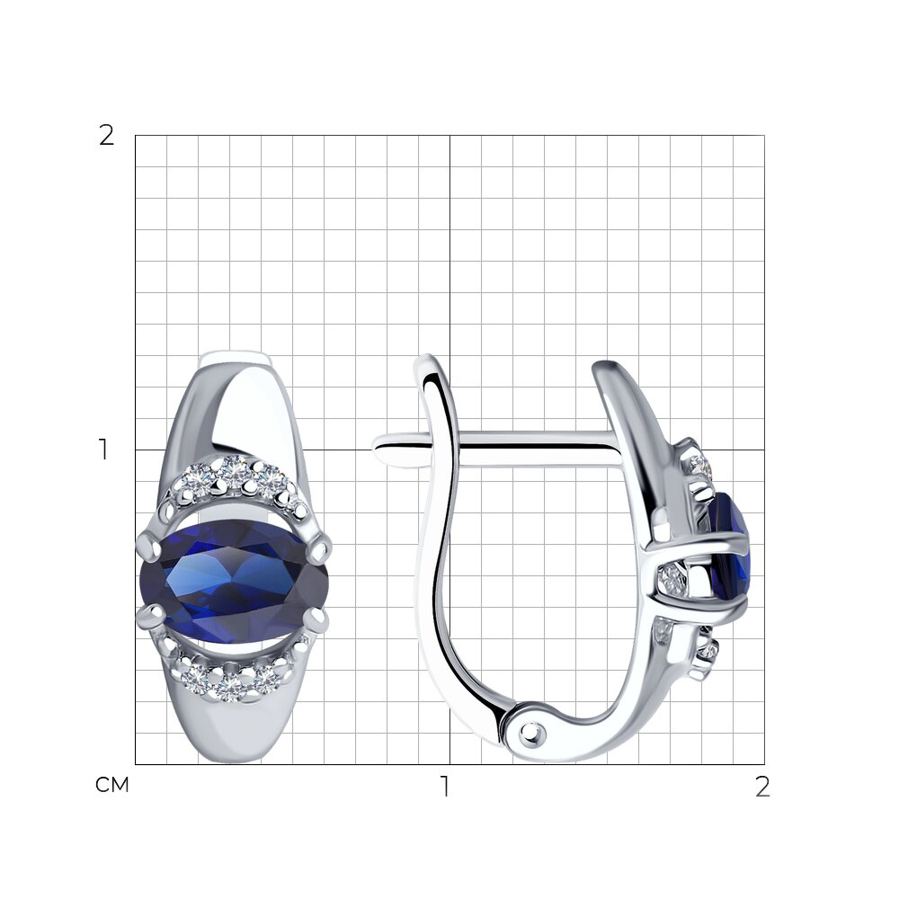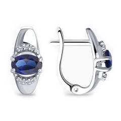 Серьги из серебра с сапфировыми корундами и фианитами