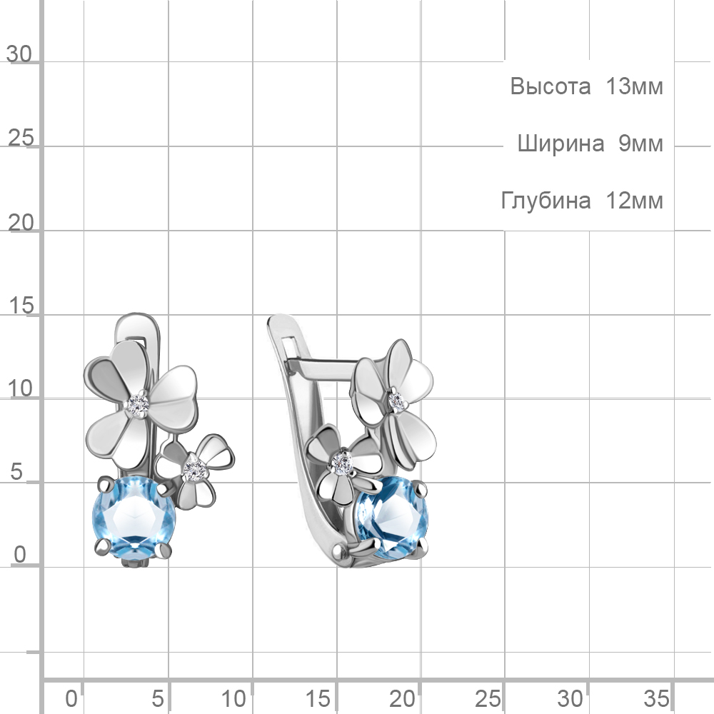 Серьги из серебра с топазами Swiss и фианитами