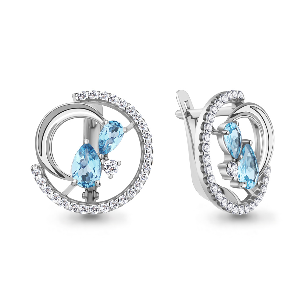 Серьги из серебра с топазами Swiss и фианитами