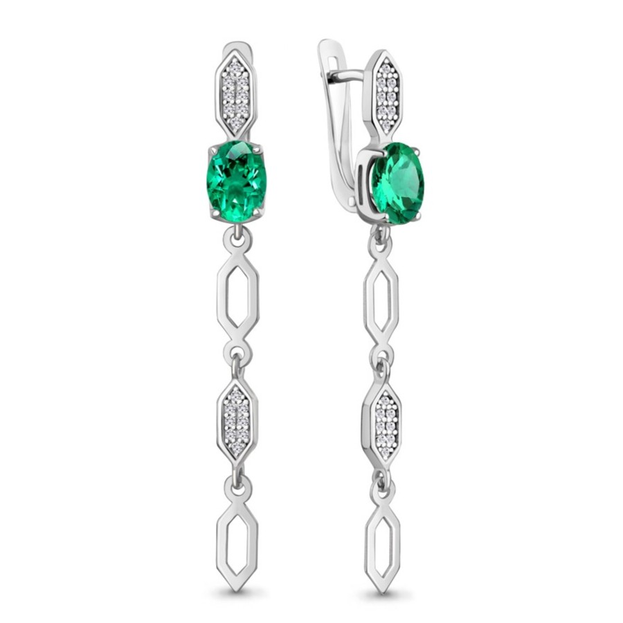 Серьги из серебра с ювелирными кристаллами и фианитами