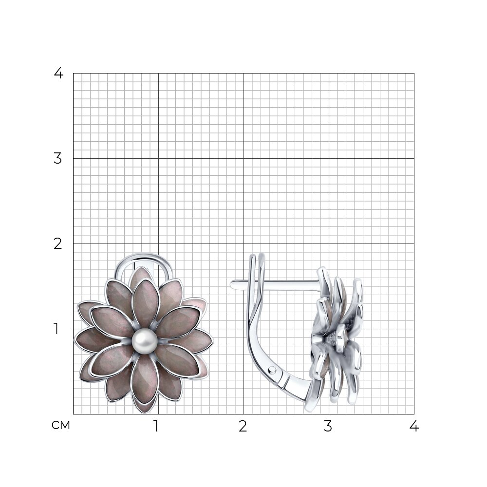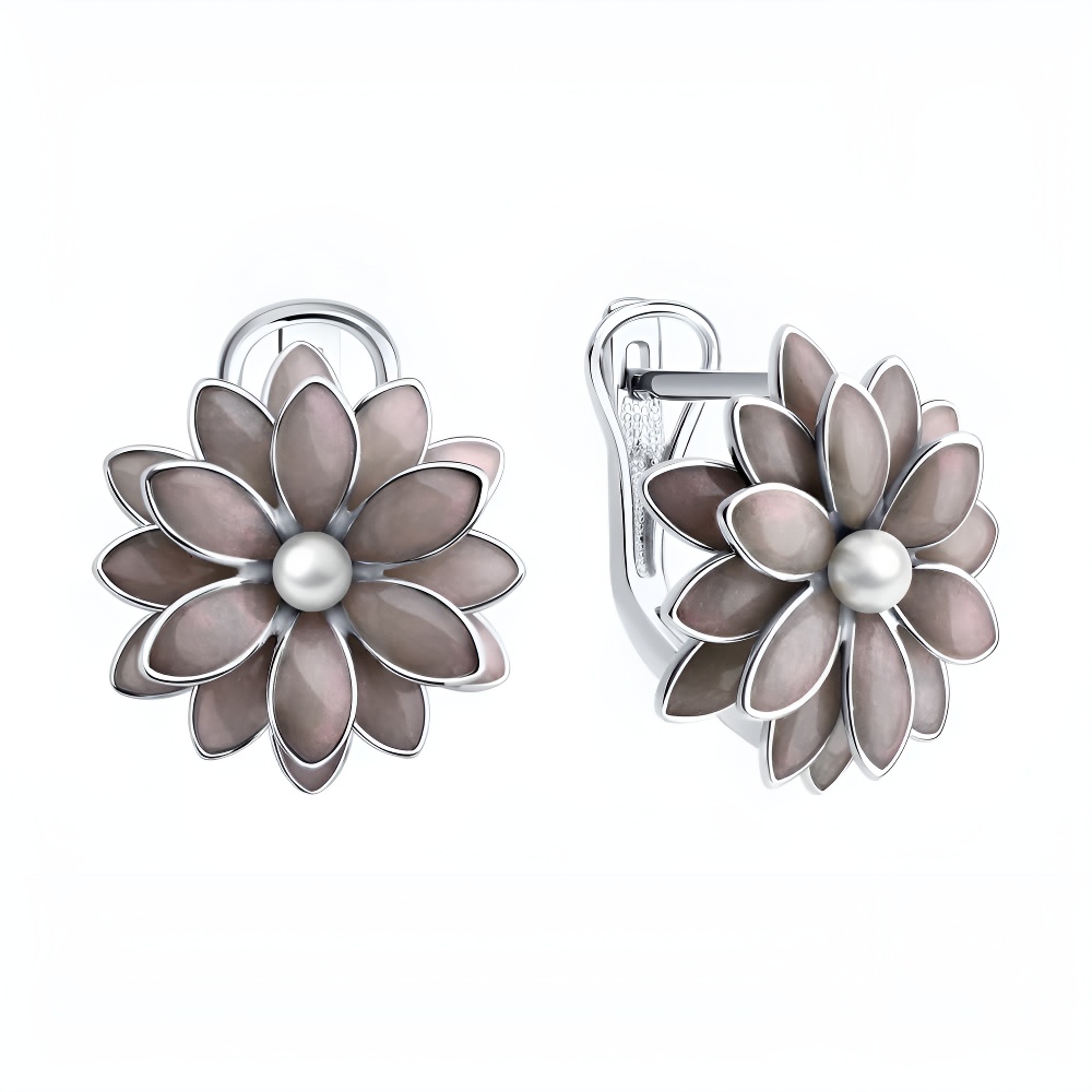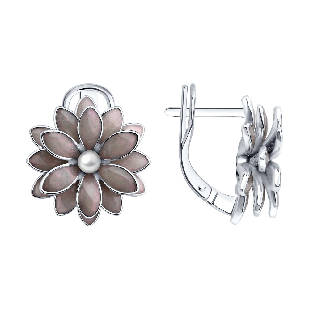 Серьги из серебра с жемчугом и эмалью