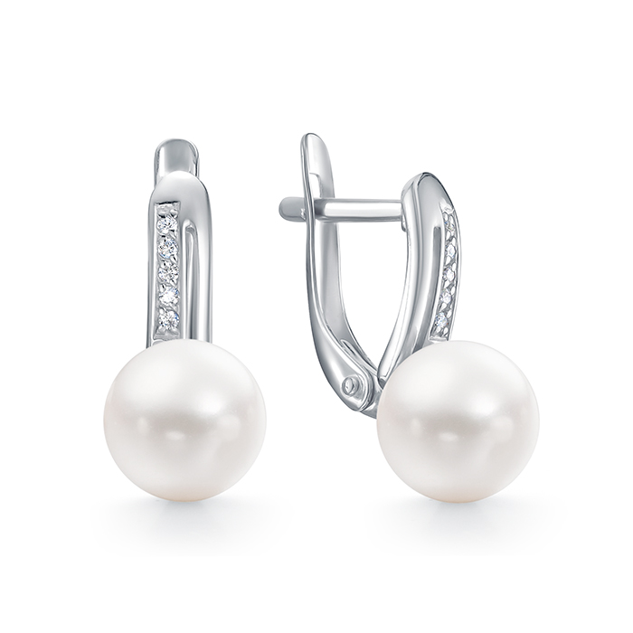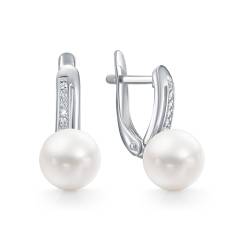 Серьги из серебра с жемчугом и фианитами