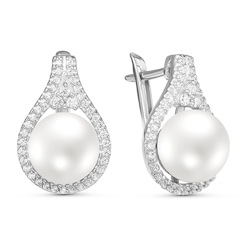 Серьги из серебра с жемчугом и фианитами