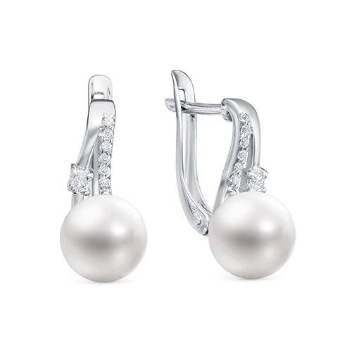 Серьги из серебра с жемчугом и фианитами