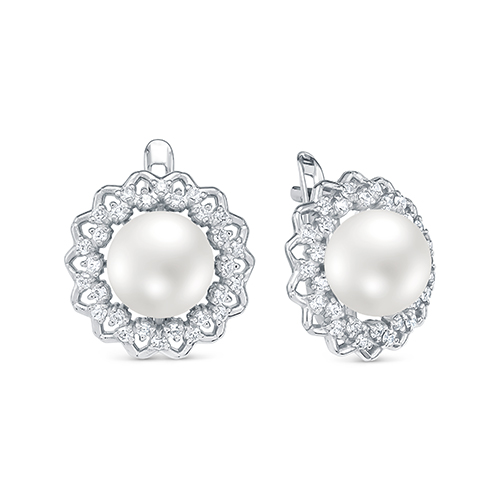 Серьги из серебра с жемчугом и фианитами