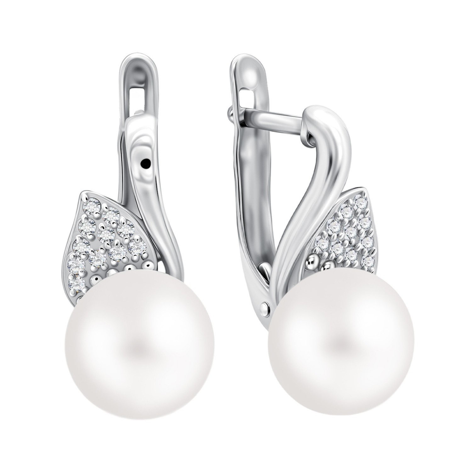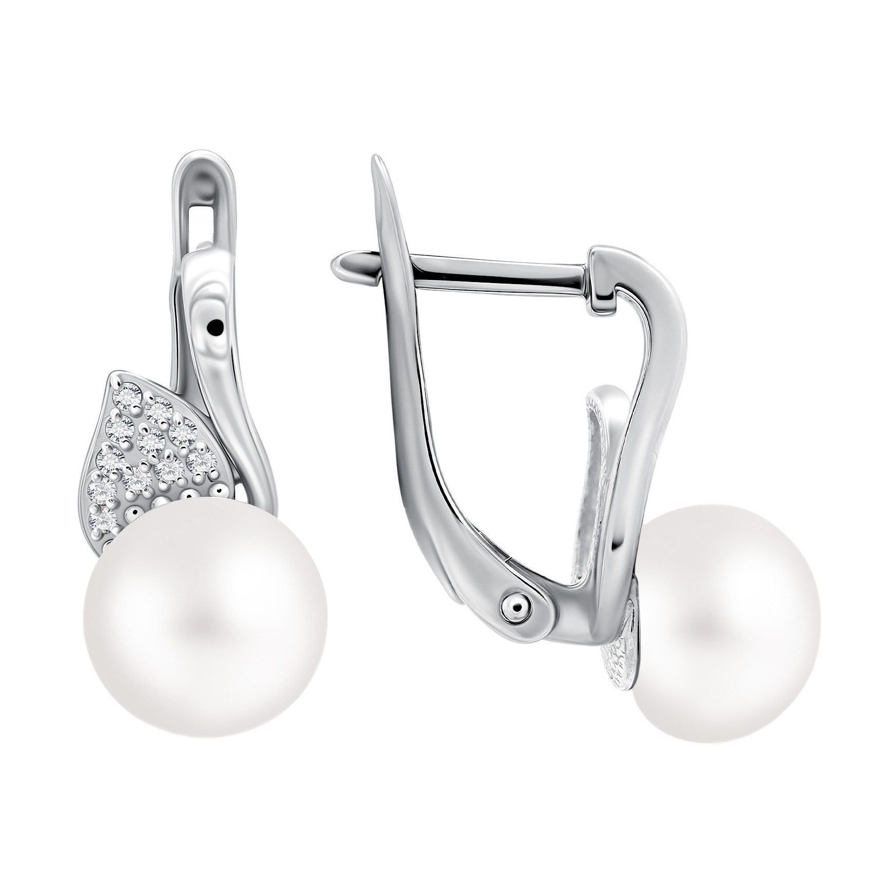 Серьги из серебра с жемчугом и фианитами
