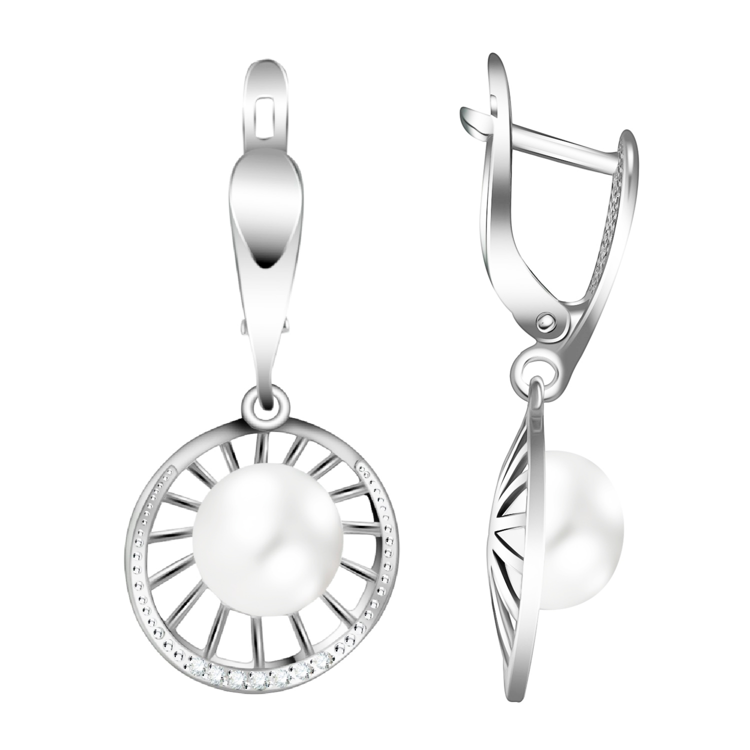 Серьги из серебра сжемчугом и фианитами
