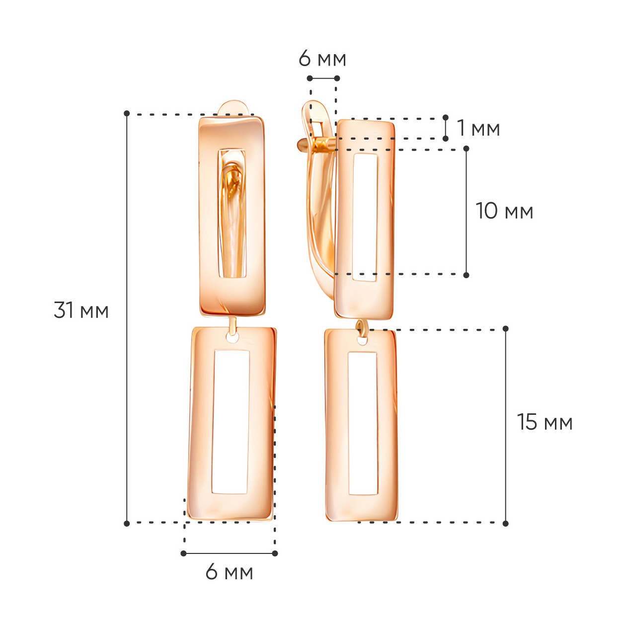 Внутренняя высота серьги - 1,0 см
