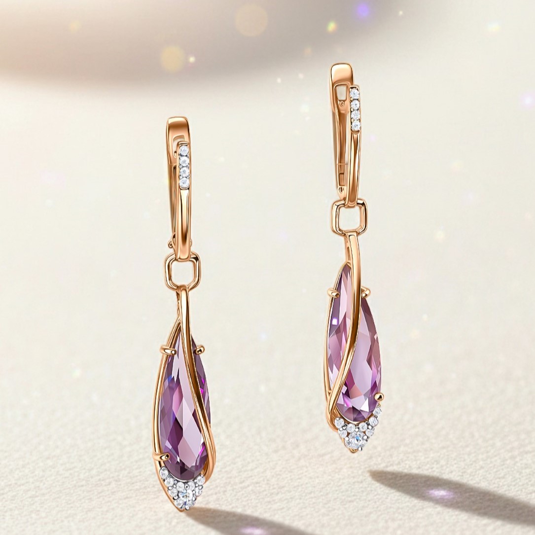 Серьги из золота с александритами и фианитами
