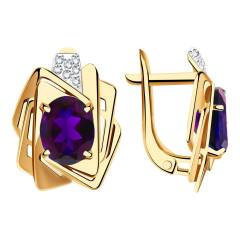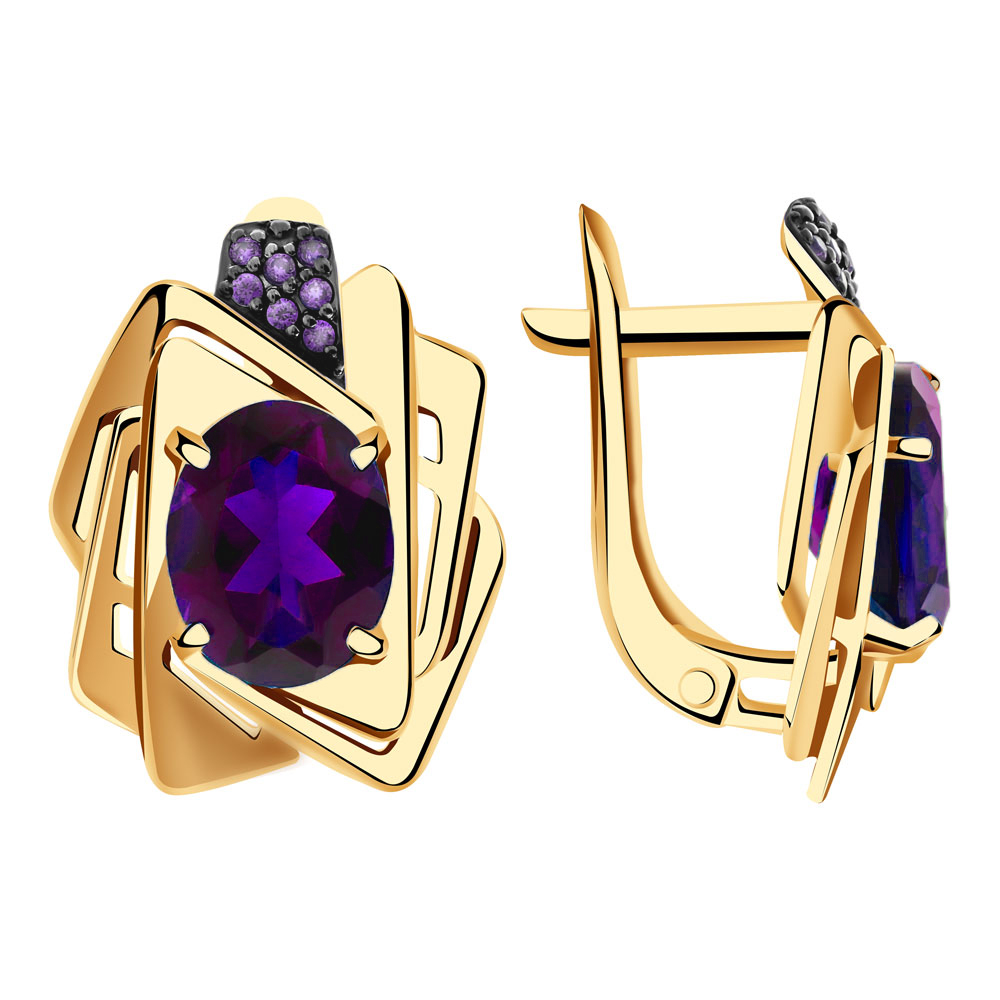 Серьги из золота с аметистами и фианитами