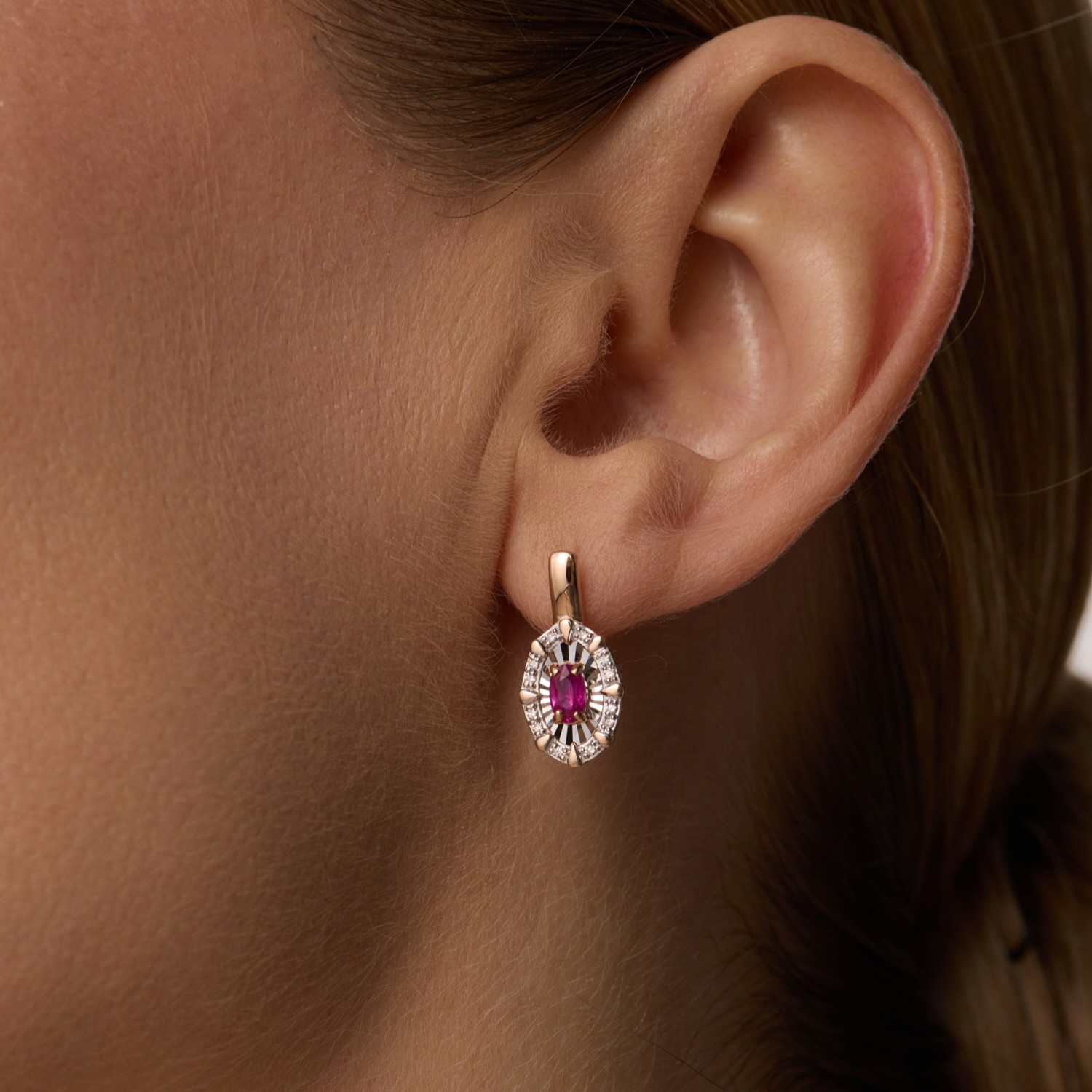 Серьги из золота с бриллиантами и рубинами