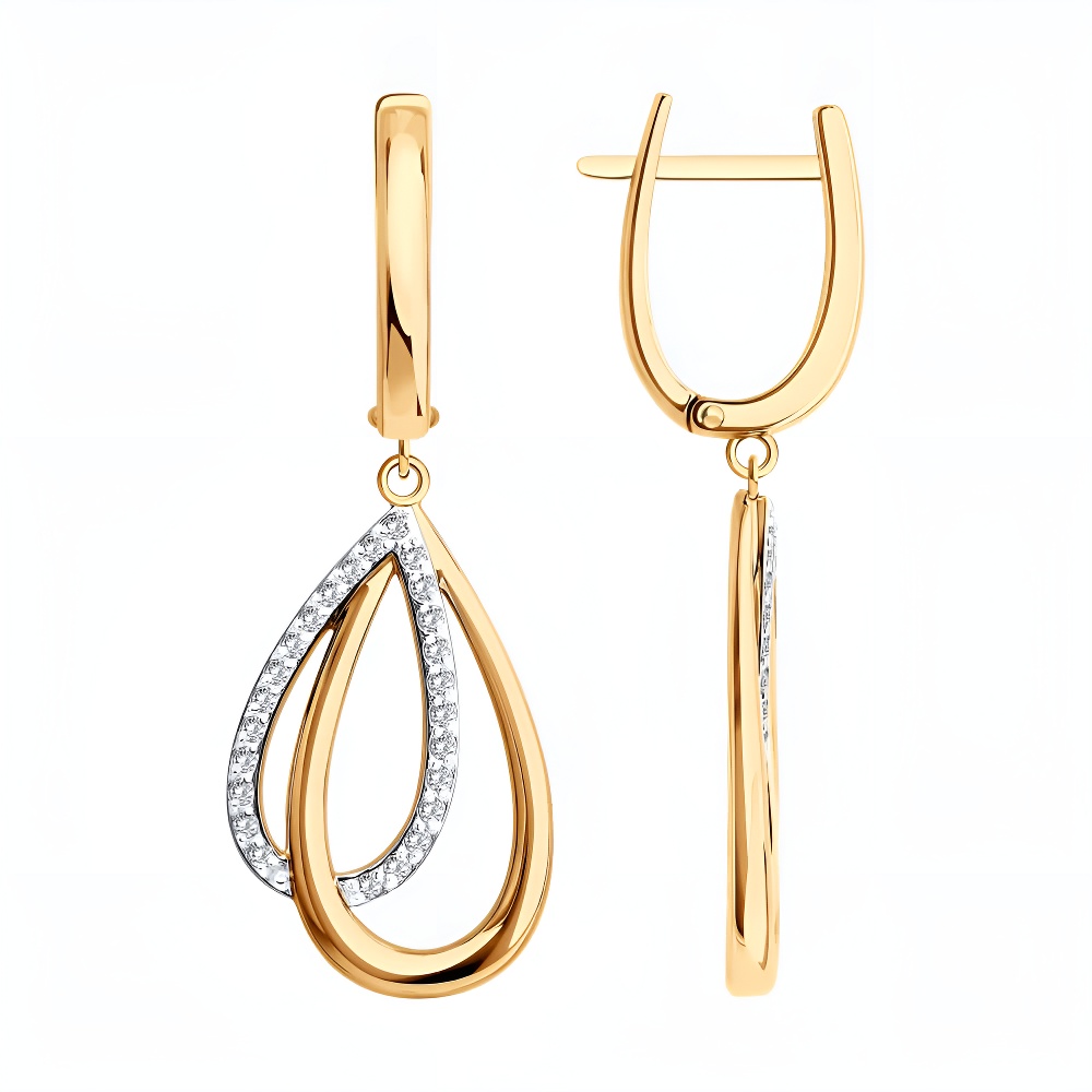 Серьги из комбинированного золота с голубыми топазами и топазами white "Лебеди"