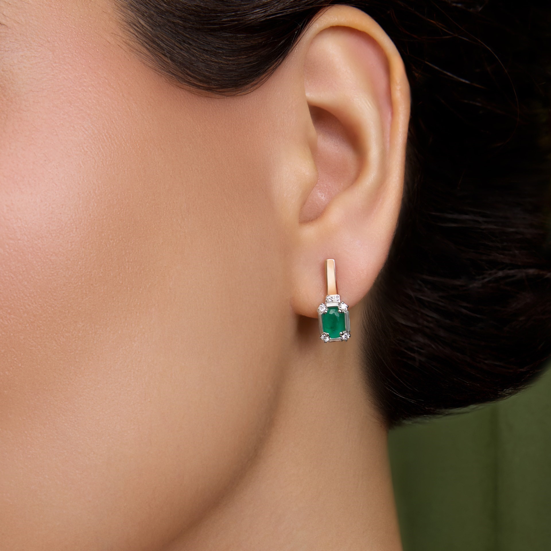 Серьги из золота с бриллиантами и изумрудами