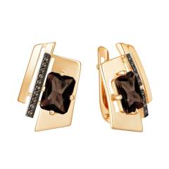 Серьги из золота с раухтопазами и фианитами