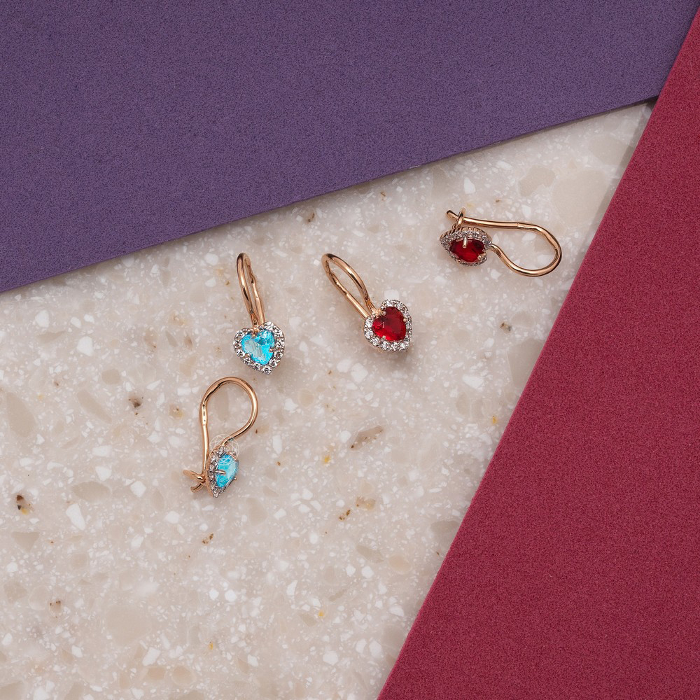 Серьги из золота с ювелирными кристаллами и фианитами